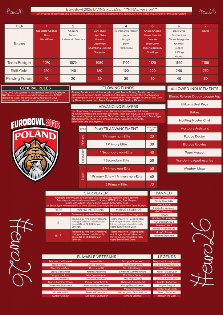 - Eligible rulesets are the 2025 Rulebook, and all new teams & Starplayers from White Dwarfs and up to Spike 18 (excluding starplayers banned by nuffle, see above)